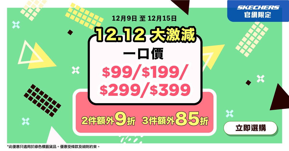 *Promotion valid from 2025-12-09 00:00:00 to 2025-12-15 23:59:59 on selected items only. The extra percentage discount (10% for 2 items, 15% for 3+ items) applies to the qualifying promotional items in the cart. Fixed price items start from HK$99. Please see the Skechers website for full terms, conditions, and product selection.*
